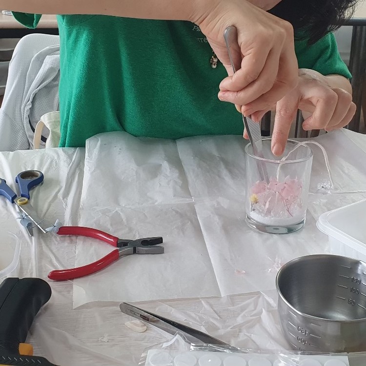 | 특강반 | 젤 캔들 | 다양한 재료의 임배딩 기법 두가지 왁스의 조합과 표현 온도차를 이용하여 캔들 만들기 | |||